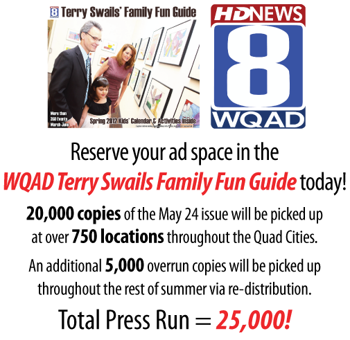 The Reader's Kids’ Calendar is HUGE, so packed that we've created a special Family Fun Guide inside the Reader Summer Guide to showcase all the great things for kids and families to do in the Quad Cities this summer. We're pleased to partner with WQAD and Terry Swails to help promote this special section of the Summer Guide.